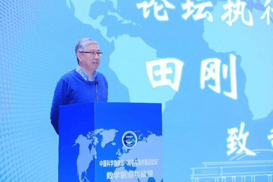 1月20日上午,科学与技术前沿论坛数学前沿与展望在海口华彩洲际酒店举行。中国科学院院士田刚致辞。廖丹丹 摄