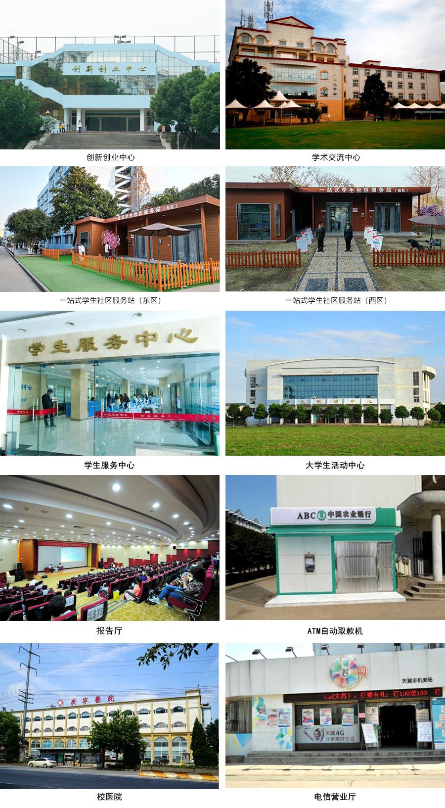 综合设施齐全。学校文化氛围浓郁,生活服务设施齐全,安全保障体系完备。建有校园“一站式”学生社区,为学生学习、生活提供一站式服务;建有校史馆、美术馆、艺术馆、博物馆、展览馆、体育馆、滨湖体育场、大学生活动中心、学术交流中心、校医院以及桂园、梅园、樱园等餐饮中心;毗邻大型商圈,有现代购物广场、电影院、健身馆、游泳馆、美食街等;学校党、团、工会以及学生组织健全,学生社团100余个,是莘莘学子培养才干、提升素质的理想场所。