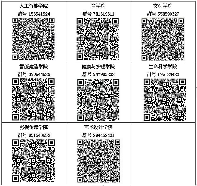 为了方便新同学及时了解学校发布各类疫情防控通知,了解学校、专业的基本情况,帮助新同学提前了解大学生活,及时解答新同学入学报到前遇到的各种问题,各学院建立了2021级新生工作QQ群,请大家及时申请加群。各学院新生工作QQ群号及二维码如下: