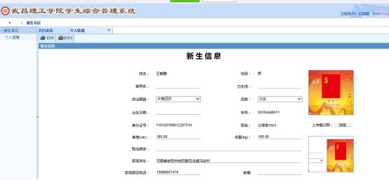 3.点击“新生专区—个人信息”完善个人基本信息,按照要求上传登记照、身份证正反面扫描件,并保存。