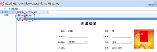 4.点击“打印”打印新生登记表。入校报到时持录取通知书、高考准考证、新生登记表到对应学院迎新点完成报到手续。