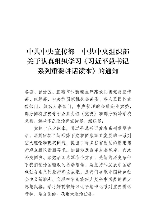 《通知》指出,要深刻认识学习《读本》的重要意义。党的十八大以来,习近平总书记发表系列重要讲话,回答了新形势下党和国家事业发展的一系列重大理论和现实问题,提出了许多富有创见的新思想新论断新要求。讲话涉及改革发展稳定、内政外交国防、治党治国治军各个方面,是新的历史条件下我们党治国理政的行动纲领,是坚持和发展中国特色社会主义的最新理论成果,是夺取中国特色社会主义新胜利、实现中华民族伟大复兴中国梦的强大思想武器。《读本》全面准确阐述了习近平总书记系列重要讲话的重大意义、科学内涵、精神实质和实践要求,阐述了讲话提出的一系列重大战略思想和重大理论观点,是广大党员干部群众学习讲话精神的重要辅助材料。认真组织学习《读本》,对于引导党员干部把思想和行动统一到中央决策部署上来,对于坚持高标准严要求推进教育实践活动,对于凝心聚力推动湖北“建成支点、走在前列”发展进程,都有着十分重要的意义。